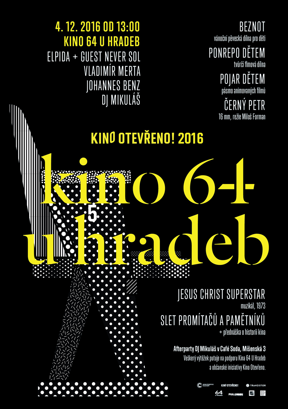 Společenská iniciativa Kino otevřeno slavnostně zakončí 4. prosince sezónu benefiční akcí v kině 64 U HRADEB. Letošní ročník je věnován promítačům a pamětníkům tohoto slavného pražského kina.
